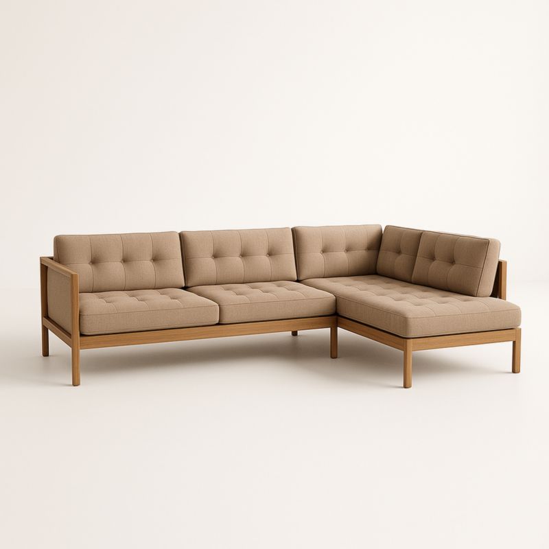 Canapé d'angle tissu brun chêne massif